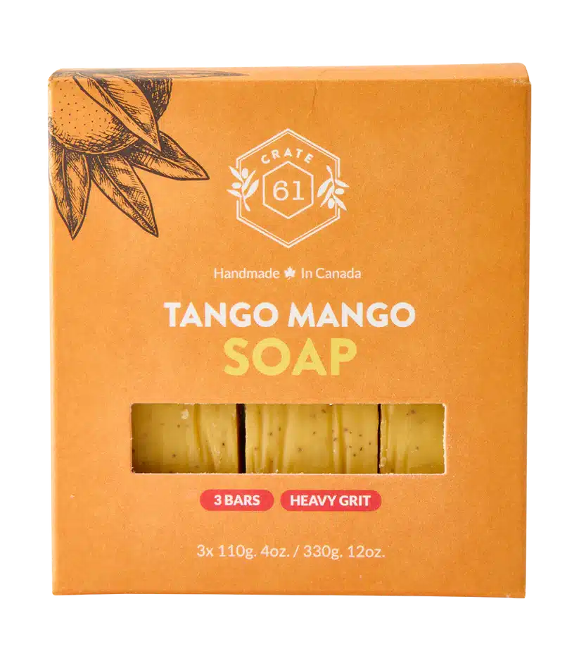 Brighten your day with the juicy, tropical blend of zesty tangerine and nourishing mango butter in Crate 61’s Tango Mango Bar Soap. Handcrafted in Canada using traditional cold-process methods, this vibrant 3-pack is made with 100% plant-based ingredients that create a rich, creamy lather while gently exfoliating the skin.