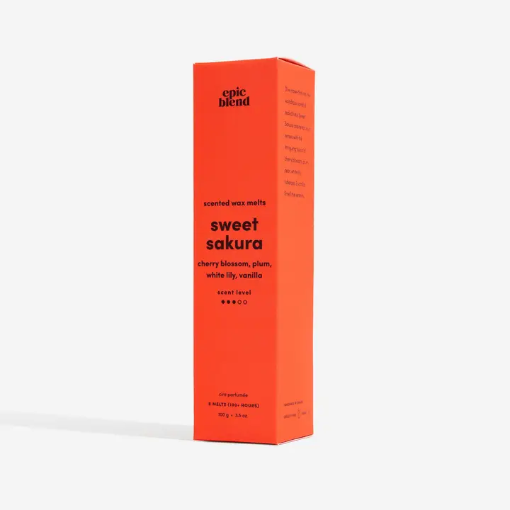Immerse yourself in the tranquil beauty of Sweet Sakura — a fragrance that captures the elegance of springtime blossoms. This enchanting blend of cherry blossom, plum, pear, white lily, tuberose, and vanilla fills your space with a delicate floral serenity. Made with natural soy wax and phthalate-free fragrance, each melt releases a soothing, graceful aroma that’s both uplifting and relaxing.