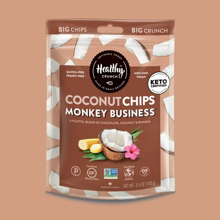 Bring a little fun to your snacking with Healthy Crunch Monkey Business Coconut Chips — a playful blend of chocolate, coconut, and banana. These crunchy, whole-food coconut chips deliver the perfect balance of natural sweetness and rich cocoa flavour, all while offering the nourishing benefits of coconut. Coconut provides healthy fats, fibre, and a touch of plant-based protein, making this a treat that feels indulgent yet wholesome.