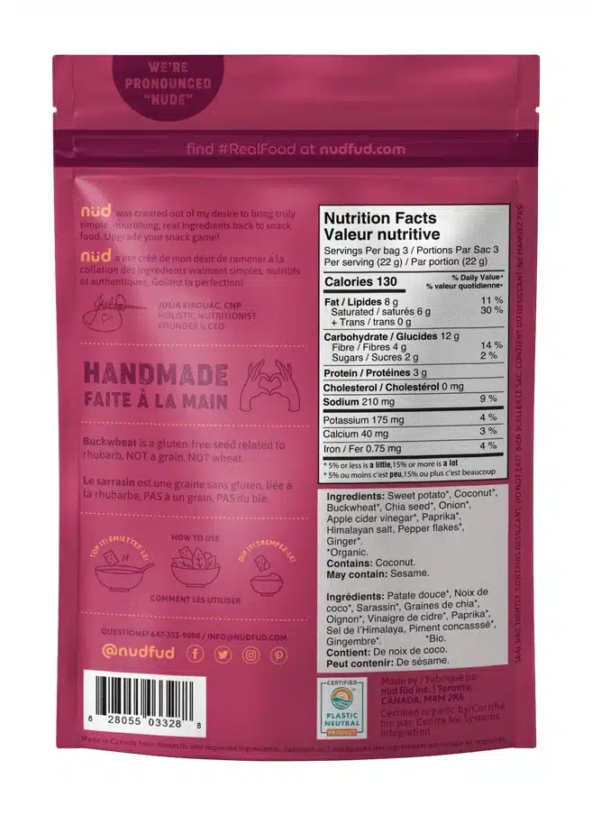 Snack smarter with nud fud inc. BBQ Sweet Potato Crackers — the wholesome, grain-free alternative to traditional wheat crackers. Made from nourishing, clean ingredients like sweet potato, coconut, chia seeds, and buckwheat, these crunchy bites are packed with good fats, fibre, and protein to keep you satisfied longer. The mild BBQ flavour offers a hint […]