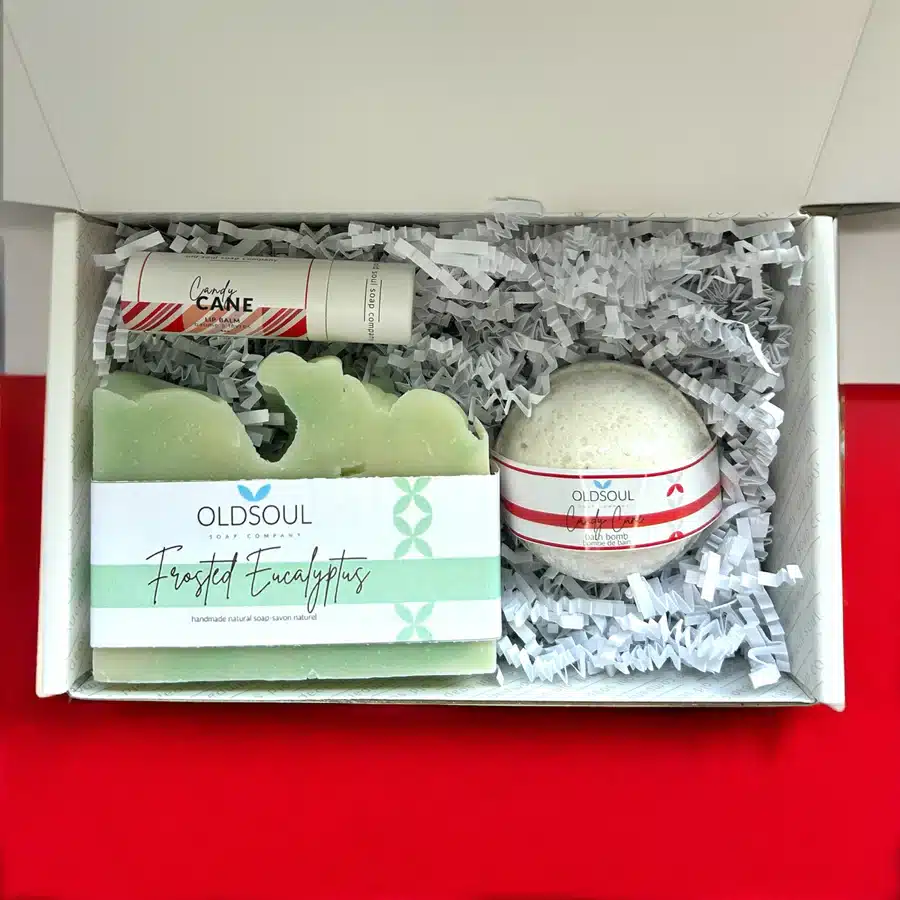 Celebrate the season of giving with the Old Soul Soap Company Small Holiday Gift Box — a cozy collection of handcrafted Canadian goodies made to relax and refresh. This festive trio includes a holiday soap, a candy cane lip balm, and a bath bomb, beautifully packaged and ready for gifting. Whether it’s a stocking stuffer, teacher gift, or a little something for yourself, this box brings cheerful holiday vibes and self-care in one perfect package.