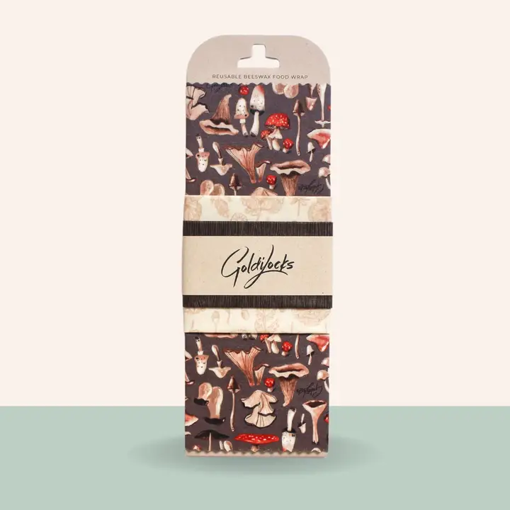 Wrap food naturally and beautifully with the Mushrooms Set of 3 Beeswax Wraps from Goldilocks Goods. Designed as a reusable alternative to plastic wrap, these Canadian-made wraps help keep food fresh while reducing waste in your kitchen. Featuring a charming honey bee print, they’re perfect for covering leftovers, wrapping produce, or packing snacks sustainably.