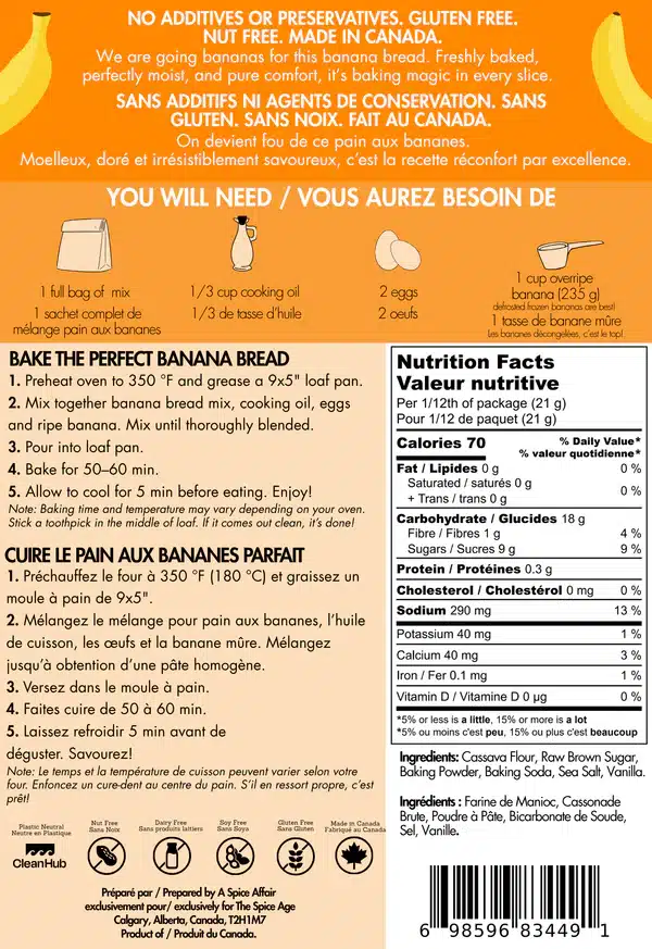 We’re going bananas for this one—and you will too. The Spice Age Bananarama Banana Bread Mix bakes up into a perfectly moist, tender loaf that tastes like pure comfort in every slice. No additives, no preservatives, and absolutely no compromises. Just clean, simple ingredients that deliver that warm, freshly baked banana bread magic.