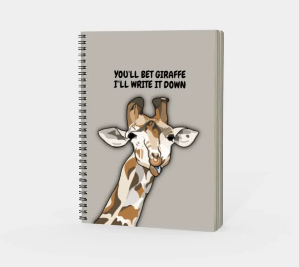 When your brain’s overflowing with thoughts, tasks, or random brilliance—you bet giraffe you’ll write it down. Featuring a tall and quirky giraffe illustration on the cover, the You Bet Giraffe I’ll Write It Down Spiral Notebook is here to keep your neck above the chaos. Whether you’re organizing your week, capturing creative sparks, or making a list for the third time today, this notebook is up for it.